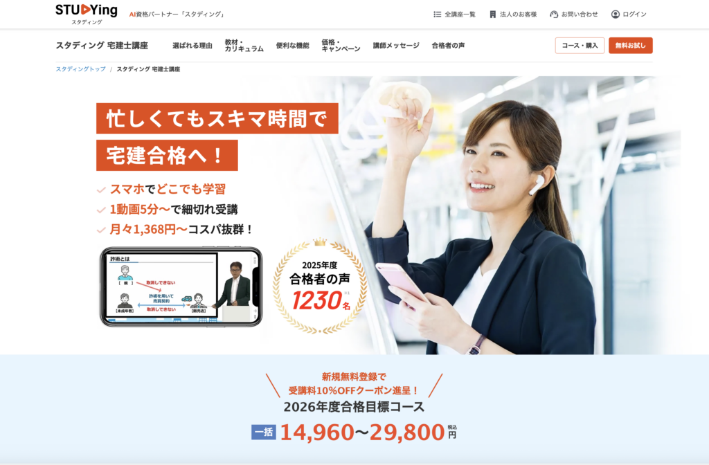 • 圧倒的な低価格とスマホ学習重視スタディング(14,960円〜+スマホ完結)