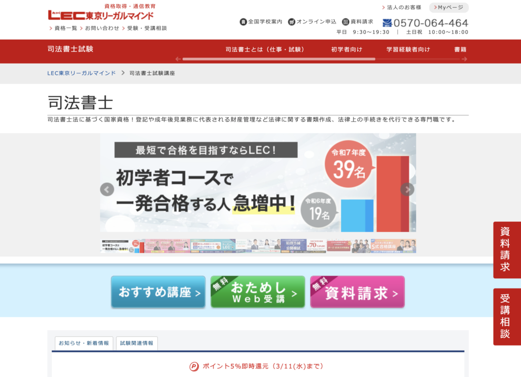 (出典:LEC東京リーガルマインド 司法書士試験講座 公式サイト)