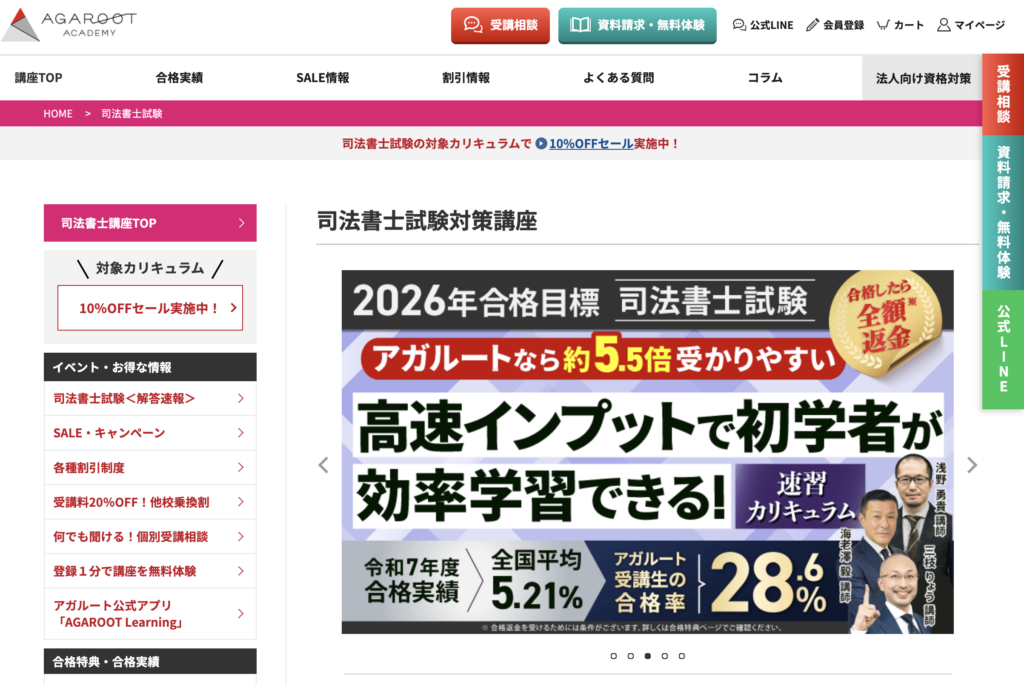 (出典:アガルートアカデミー 司法書士試験講座 公式サイト)