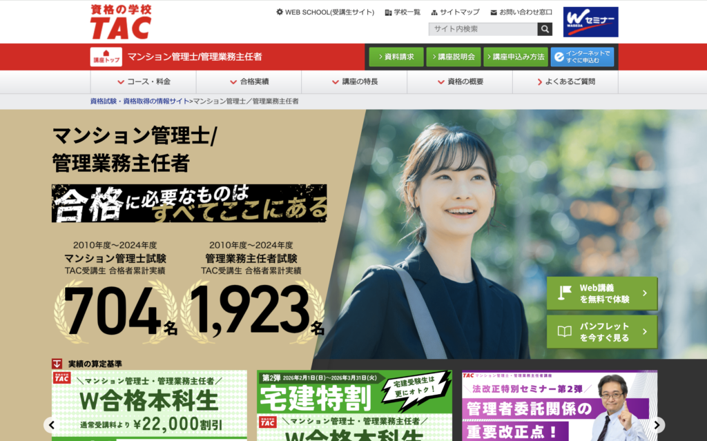 (出典:TAC公式 マンション管理士/管理業務主任者講座トップページ)