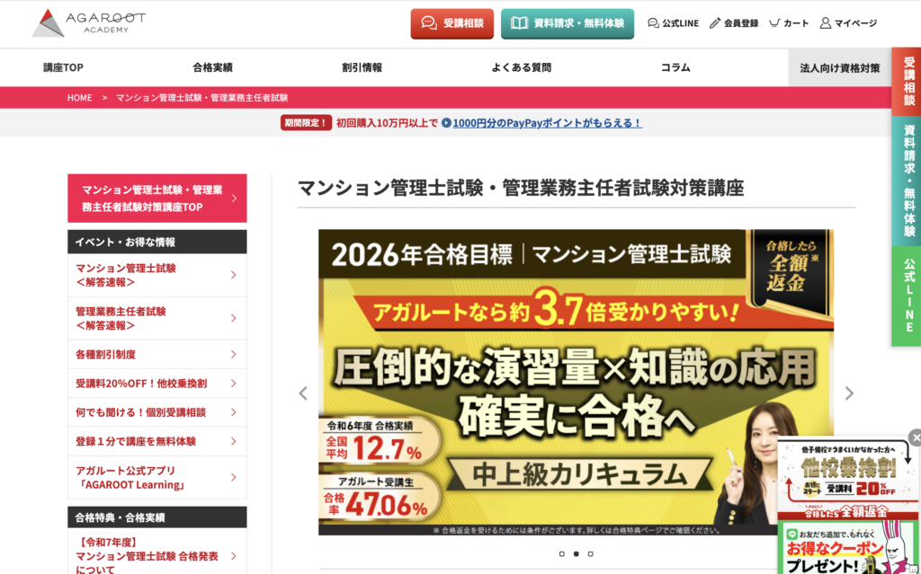 (出典:アガルートアカデミー マンション管理士試験講座 公式サイト)