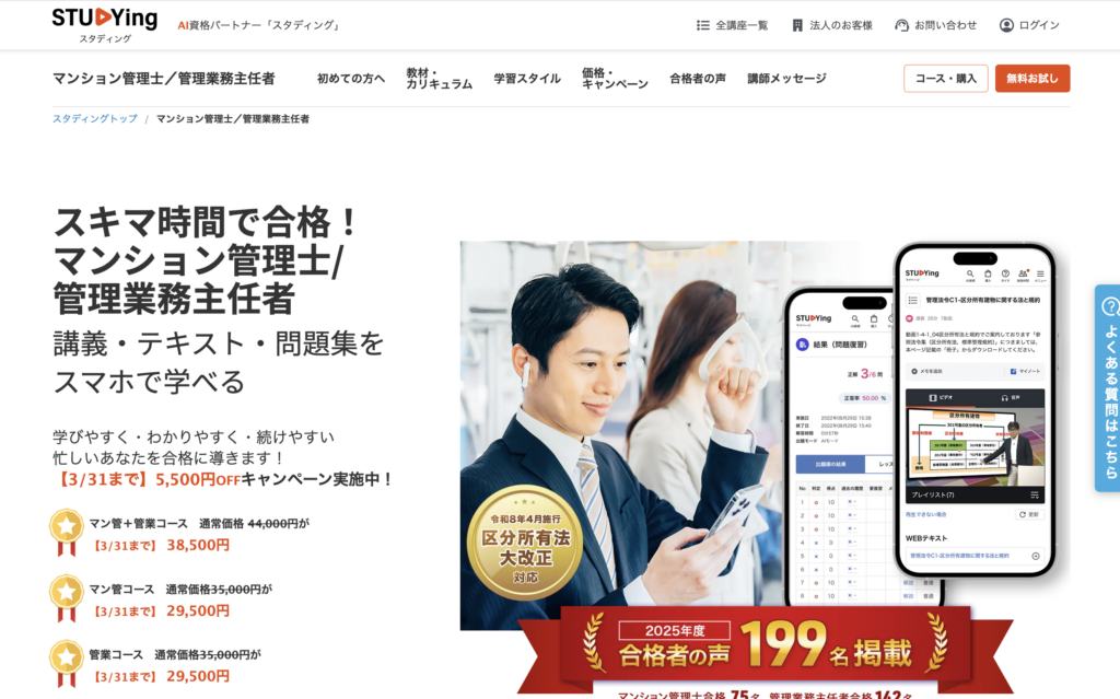 おすすめ:スタディング マン管/管業 合格コース